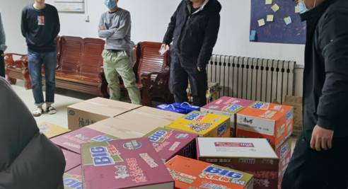 这是物光院第二批为学生发放生活物质,在北校区值班坚守的学工干部吕强、景玉、张启凡与研究生志愿者连夜完成了此次物资发放,确保全体同学们元旦当天收到导师的祝福。望着同学们脸上洋溢着开心的笑容,大家始终相信没有一个冬天不可逾越,没有一个春天不会到来。在新的一年来临之际,让我们一道守望相助、共克时艰,满怀信心地迎接2022年春暖花开!