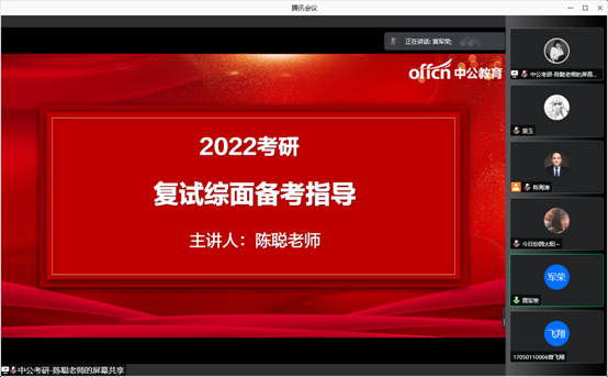 于2022年1月8日下午举办了“研究生考试复试指导”线上专题培训。本次培训由中公考研政治研究院部长、中公考研资深讲师陈聪主讲,由金沙娱乐城
