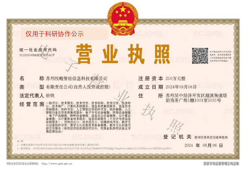 项目负责人孙浩将与苏州牧鲲智绘信息科技有限公司开展科研合作,现将合作相关事项公示如下: