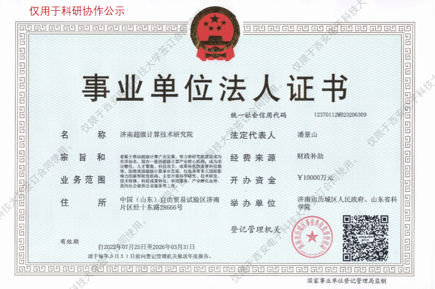 项目负责人马向超将与济南超级计算技术研究院开展科研合作,现将合作相关事项公示如下: