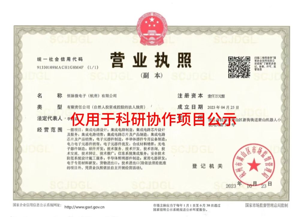 项目负责人郭亮将与恒脉微电子(杭州)有限公司开展科研合作,现将合作相关事项公示如下: