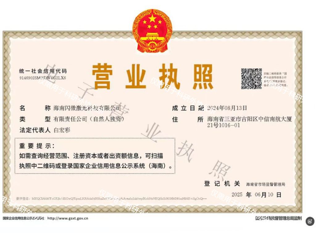 项目负责人郭亮将与海南闪微激光科技有限公司开展科研合作,现将合作相关事项公示如下: