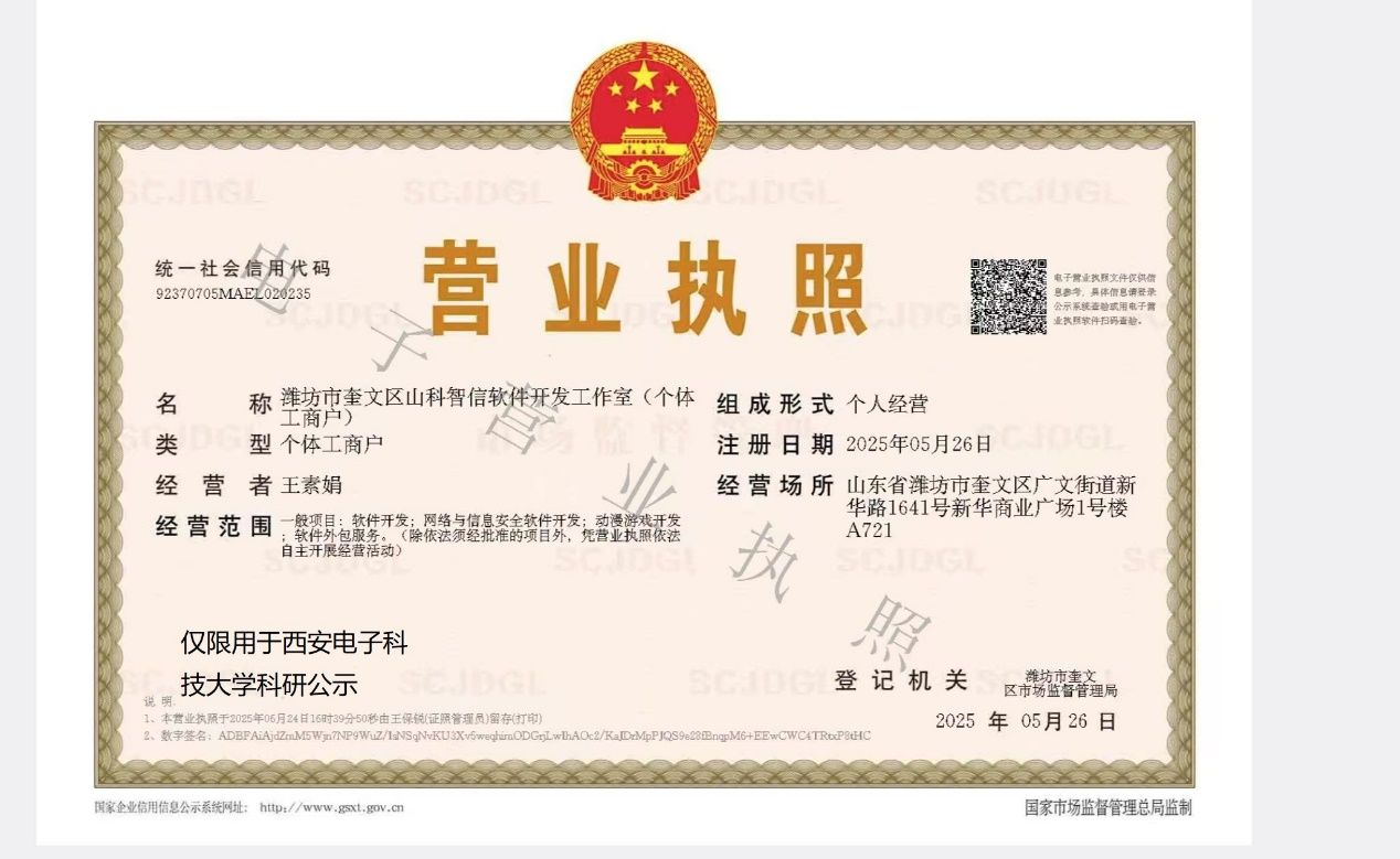 项目负责人孙浩将与潍坊市奎文区山科智信软件开发工作室(个体工商户)开展科研合作,现将合作相关事项公示如下: