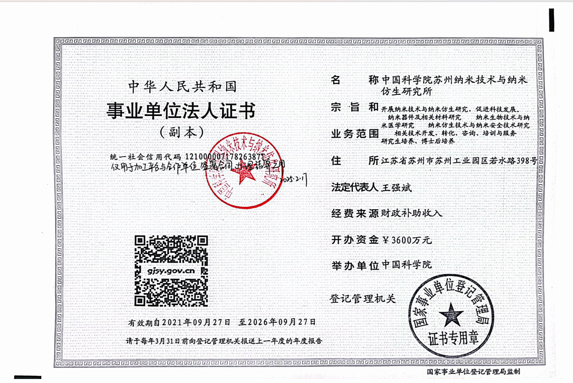苏州纳米技术与纳米仿生研究所与项目负责人杨翠将开展科研合作,现将合作相关事项公示如下: