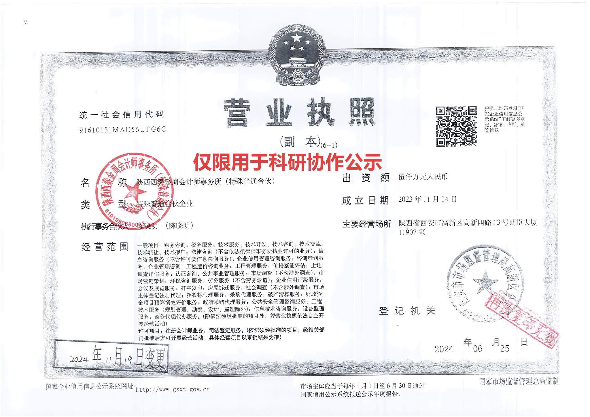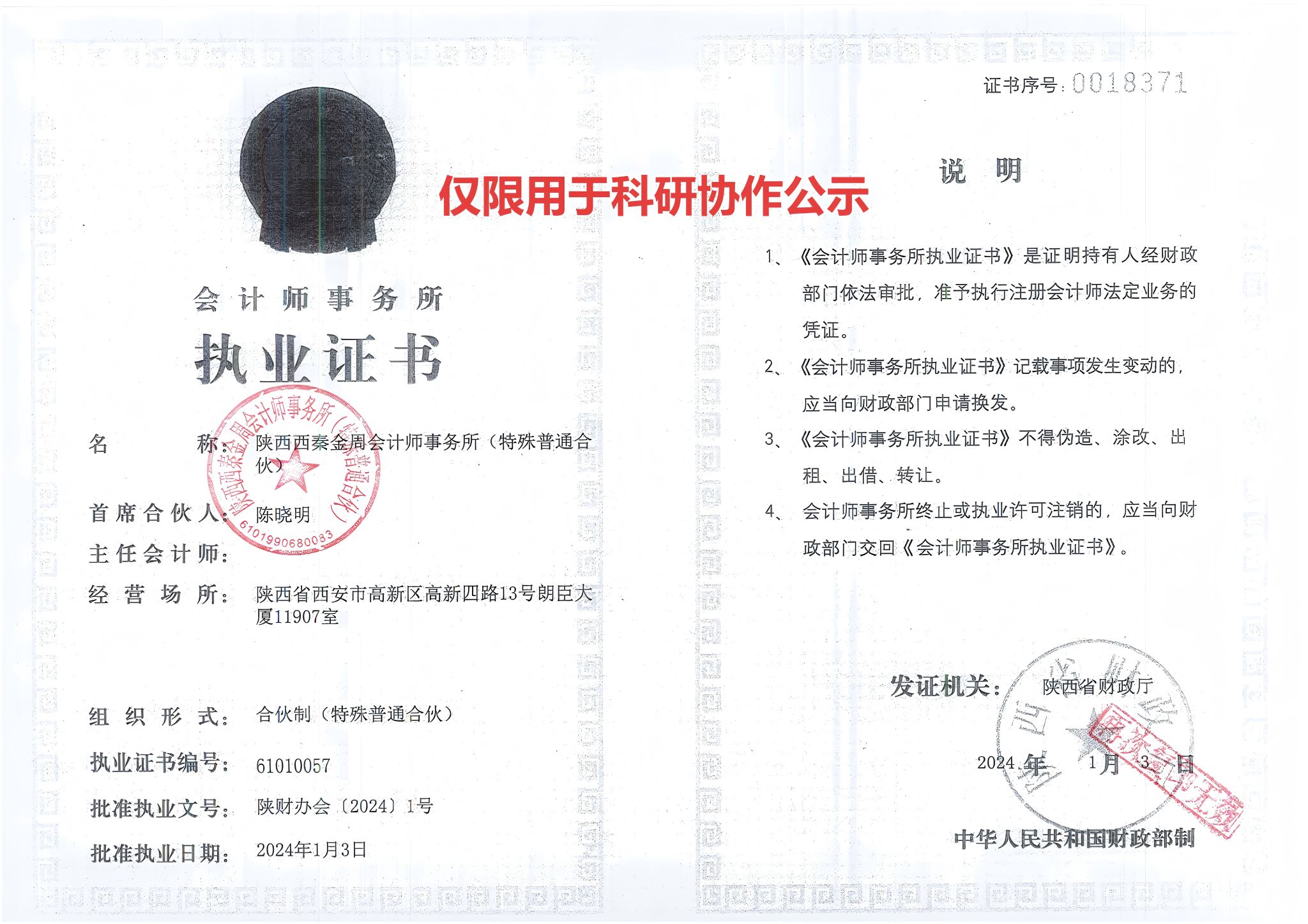 科研协作项目的管理,确保对抗条件-下探测技术的顺利进行。陕西西秦金周会计师事务所(特殊普通合伙)与项目负责人刘金鹏将开展科研合作,现将合作相关事项公示如下: