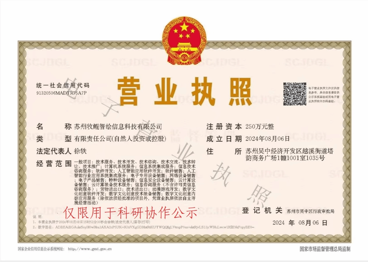 科研协作项目的管理,确保基于大数据的评估试验仿真样本生成平台的顺利进行。苏州牧鲲智绘信息科技有限公司与项目负责人张建奇将开展科研合作,现将合作相关事项公示如下:
