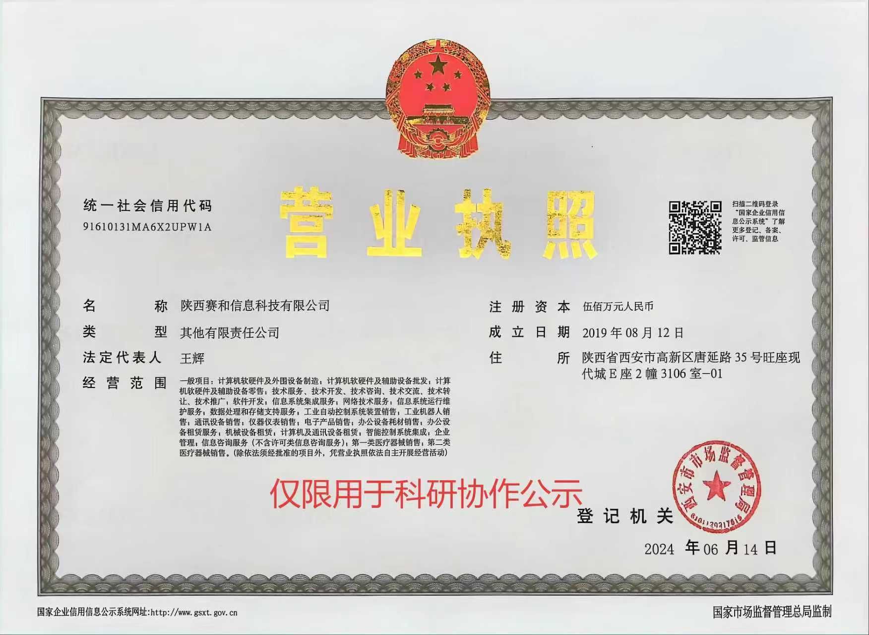 科研协作项目的管理,确保基于AI的全国产化多光谱成像测量装备产业化关键技术与工艺研发的顺利进行。 陕西赛和信息科技有限公司与项目负责人秦翰林将开展科研合作,现将合作相关事项公示如下: