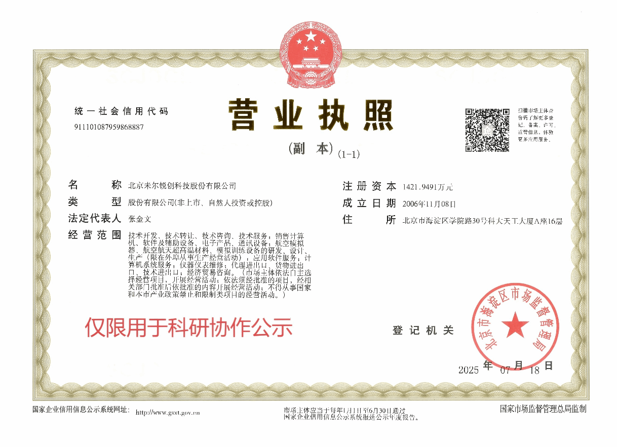 科研协作项目的管理,确保多频段复杂环境建模与仿真平台项目的顺利进行。北京未尔锐创科技股份有限公司与项目负责人吴鑫将开展科研合作,现将合作相关事项公示如下: