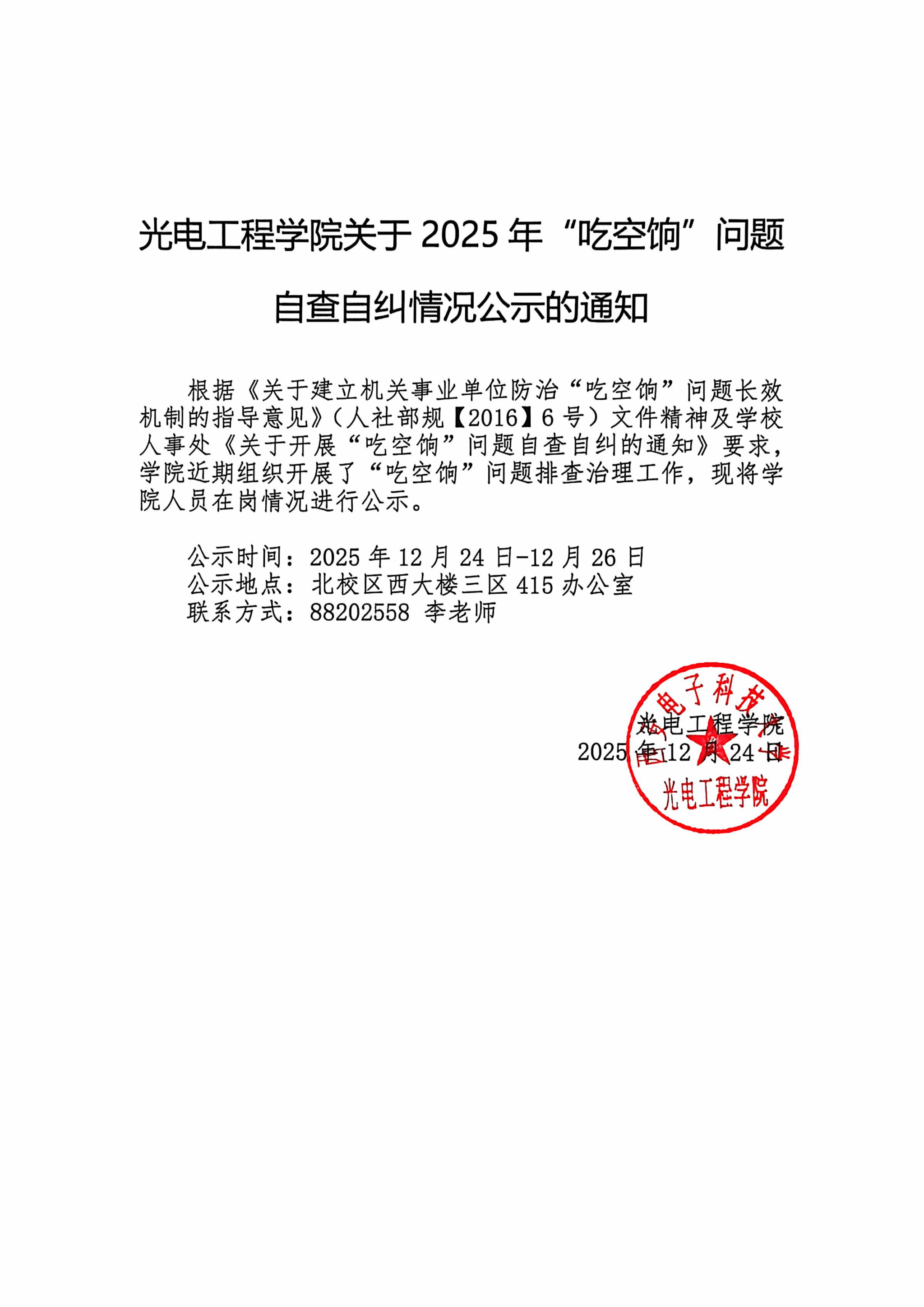 金沙娱乐城 关于2025年“吃空饷”问题自查自纠情况公示的通知