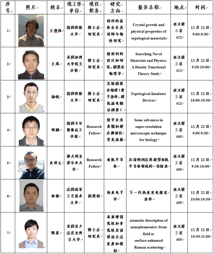 金沙娱乐城 首届“华山青年学者国际论坛”物光院分论坛学术报告安排