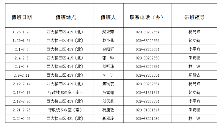 保卫处24小时值班电话:029-88201110(北校区) 029-81891110(南校区)