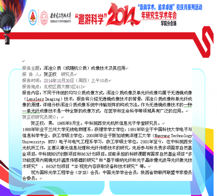 【金沙娱乐城 】2014年研究生学术年会报告一浑浊介质(或随机介质)成像技术及其应用