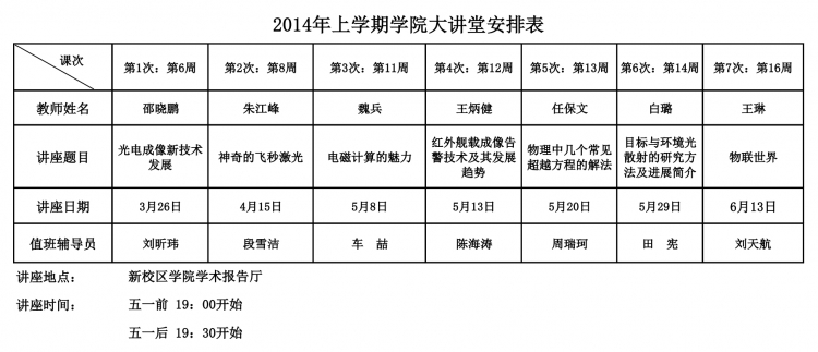 【金沙娱乐城 】2014年上学期金沙娱乐城 大讲堂安排