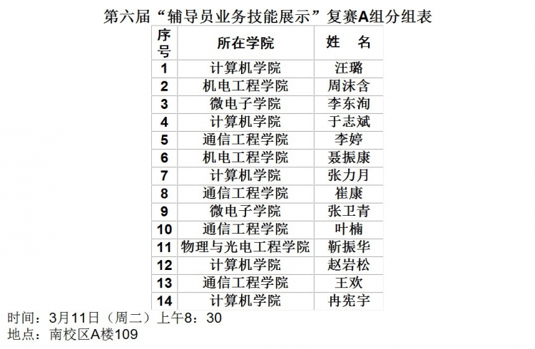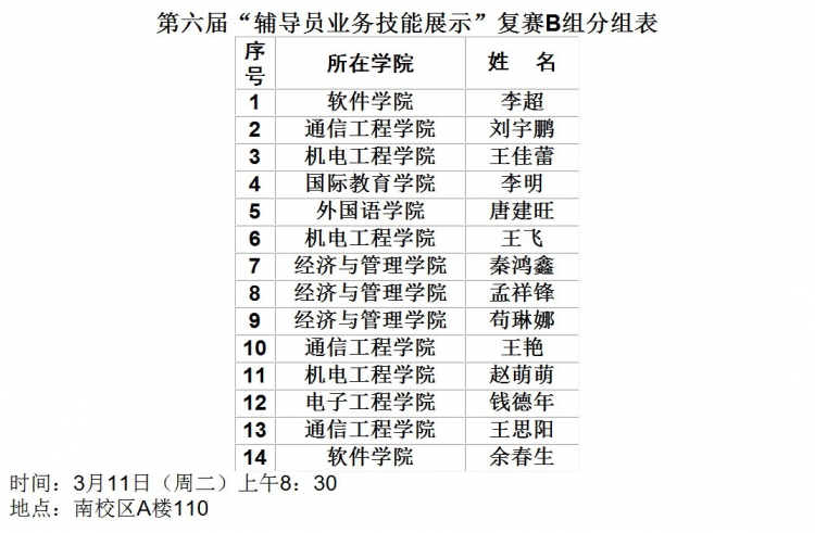 【金沙娱乐城 】第六届“辅导员业务技能展示”复赛分组表