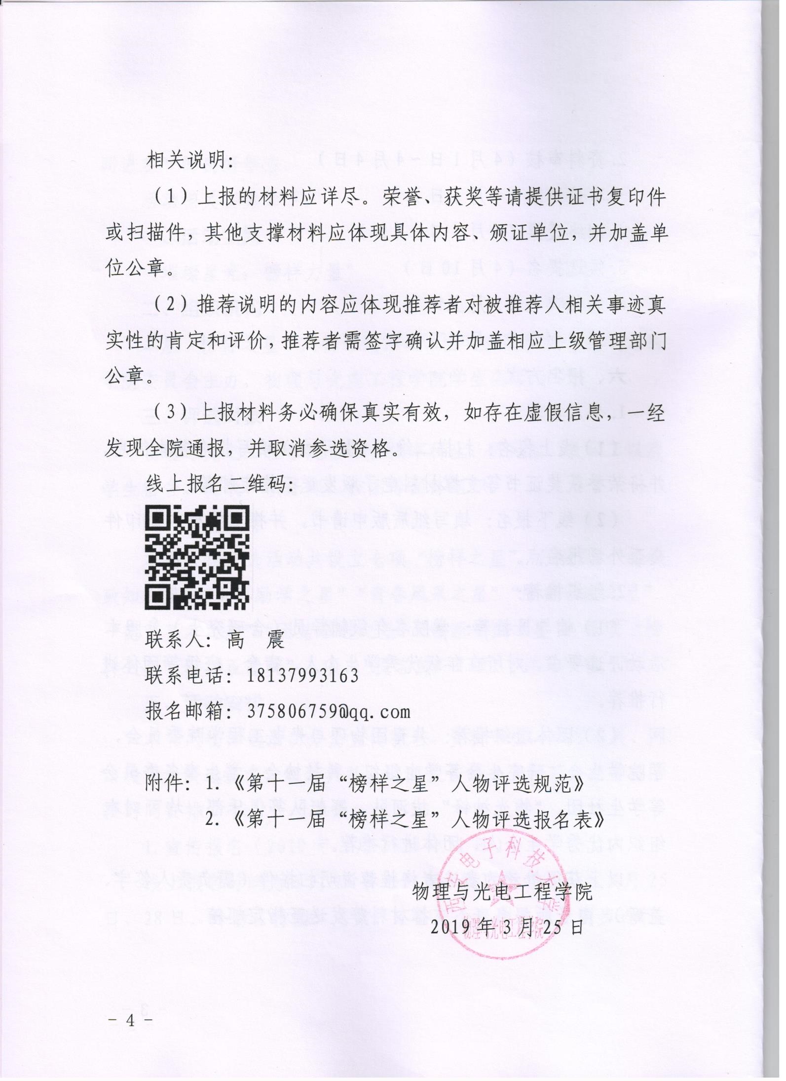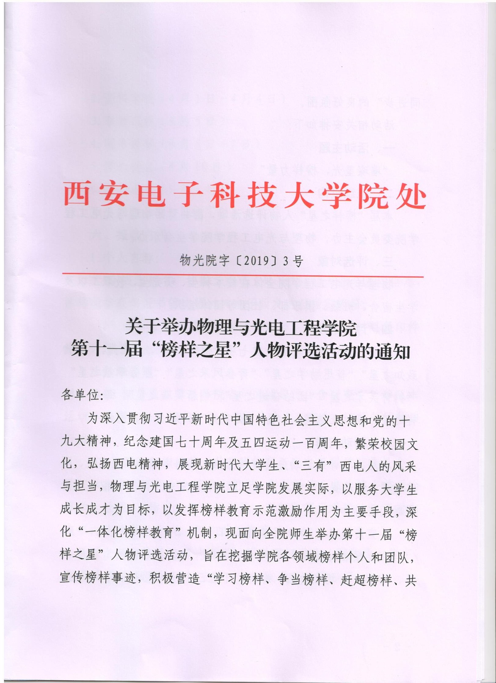 关于举办物理与金沙娱乐城 第十一届“榜样之星”人物评选活动的通知