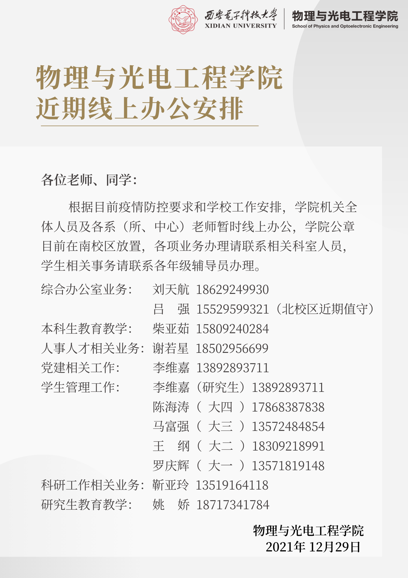 物理与金沙娱乐城 近期线上办公安排