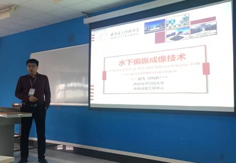 刘飞博士在其报告中介绍了水下偏振成像技术及其应用前景,重点为高浑浊度水体中的水下主动偏振成像技术,利用波长选择原理降低水体散射对成像的影响,同时基于光学相关原理,有效利用水下场景信息的双域特性去除了背景散射光,提升水下成像距离1.5~2倍。此外,刘飞博士对水下被动成像技术也进行了介绍,该技术重点在于解决由于水体吸收作用造成的图像色彩畸变问题。此次报告引起了国内外与会专家的广泛兴趣和一致好评,并被评为优秀报告。