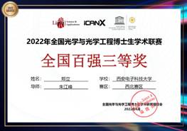 2022年4月10日,郑立博士代表西北赛区参加全国百强线上积分赛第八场比赛,与来自全国其他九大赛区的优秀选手经过激烈的竞争,最终获得三等奖(第六名)的好成绩。西北赛区累计积分42分,为全国十大赛区第五名。