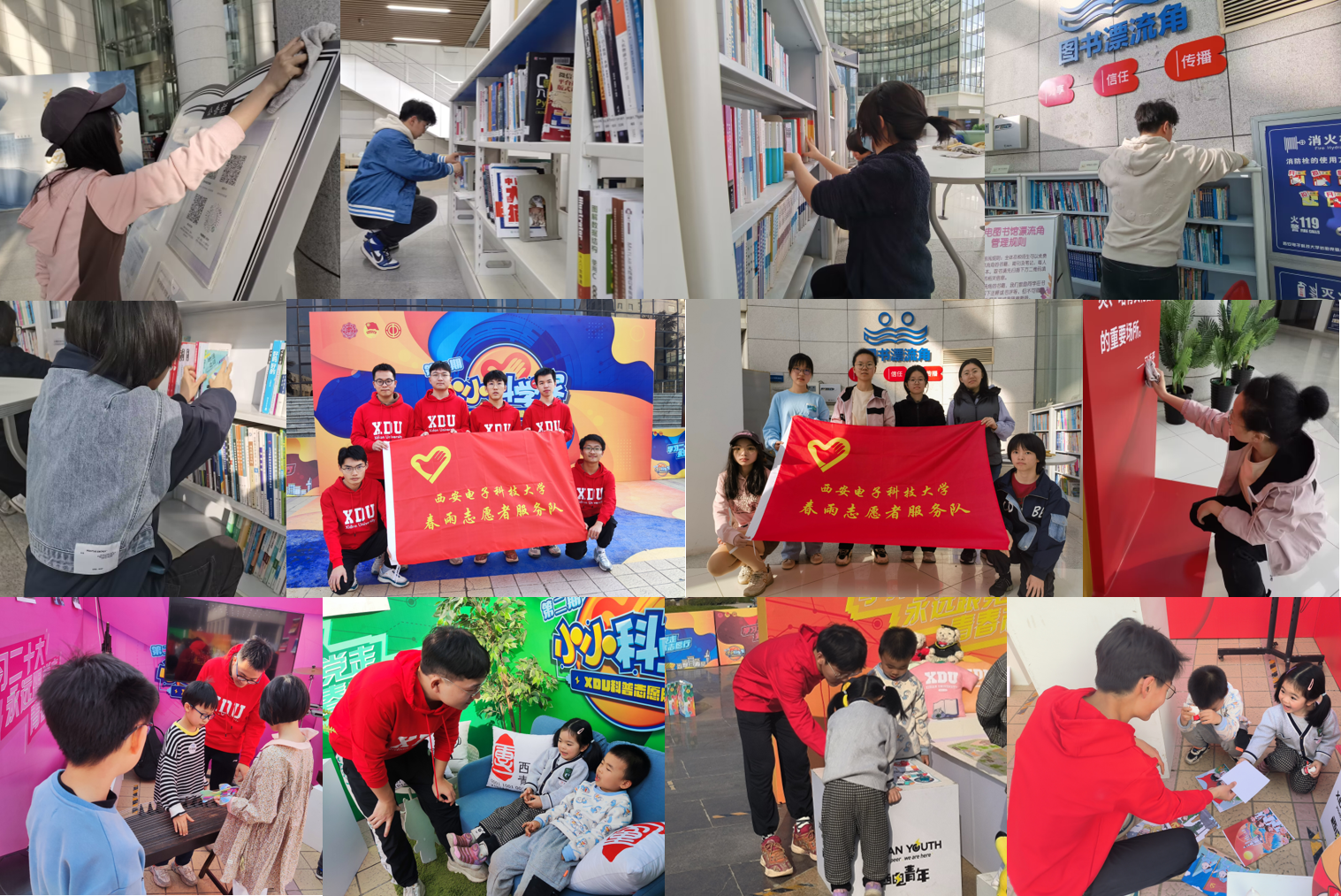 春雨志愿服务队招募组织学生志愿者参与校园志愿服务活动。在南校区图书馆,志愿者们分门别类地整理图书、细心细致的清理书架和打扫卫生,为读者顺利找到书籍提供便利,让读者在整洁的环境中愉快地阅读。在北校区“小小科学家”志愿服务的现场,志愿者们承担红色筑梦、科技创新等六个展区的导览工作,为前来参观的小朋友讲解各个展区的特色科创作品。
