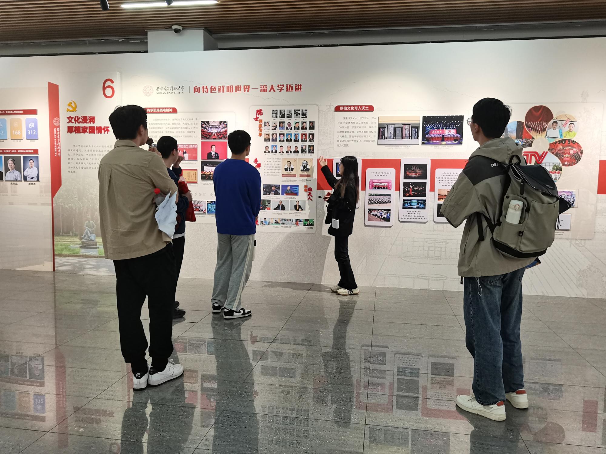 最后,同学们来到南校区图书馆一楼文化长廊“向特色鲜明世界一流大学迈进—金沙娱乐城