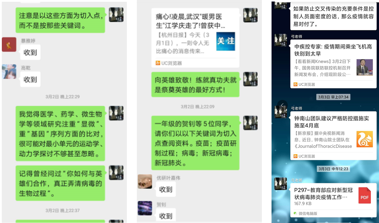 研究生导师、研工干部、研究生学生干部三个管理主体共抓全体研究生每日疫情防控信息采集、处理工作,形成疫情防控信息“冗余”机制,教职工党员在参与学生防控信息管理的过程中也达到了自我督促的效果。研究生导师充与研工干部充分沟通,全面掌握学生思想动态,关注热点舆情,在专业课程中穿插时事热评、政策宣传、防疫知识,强化特殊时期的课程思政、课堂育人、科研育人。