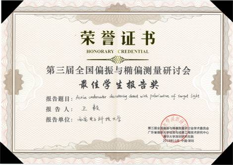 2018年11月11日至13日,金沙娱乐城 青年教师刘飞博士及学生卫毅受邀参加清华大学深圳研究生院在深圳举办的第三届全国偏振与椭偏测量研讨会(简称CNPE2018)。并在大会期间做题为“水下偏振成像技术”的学术报告。参会人员合影刘飞博士在其报告中介绍了水下偏振成像技术及其应用前景,重点为高浑浊度水体中的水下主动偏振成像技术,利用波长选择原理降低水体散射对成像的影响,同时基于光学相关原理,有效利用水下场景信息的双域...