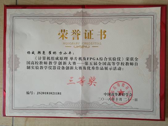 (通讯员:杨威)日前,第五届全国高等金沙娱乐城 教师自制实验教学仪器设备创新大赛在成都落幕。物理与金沙娱乐城 杨威、韩亮、崔彬、方小平等老师研发的《计算机组成原理、单片机及FPGA综合试验仪》获大赛三等奖。《计算机组成原理、单片机及FPGA综合试验仪》具有“一机多用”、 “一体机化”、“可调性强”和“可视性强”等特点,在两年的教学实践中,有一千多名本科生利用该实验仪完成了微机原理和系统设计等实验,并取得了非常...