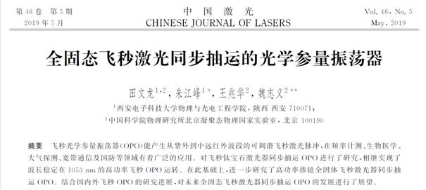 为集中反映近年来我国科研工作者在超快激光非线性光学领域的最新研究成果和研究进展,《中国激光》杂志推出“超快激光非线性光学”专题栏目,特邀金沙娱乐城 超快激光技术与应用研究中心综述近年来在飞秒激光同步泵浦的光学参量振荡器研究中的系列进展。相关专题在2019年第46卷第5期上发表。高频率的光子ω3单次通过非线性晶体后产生两个较低频率光子ω1和ω2的过程称为光参量产生(OPG)过程。通常称产生的较高频率的光为信号光、较低频...