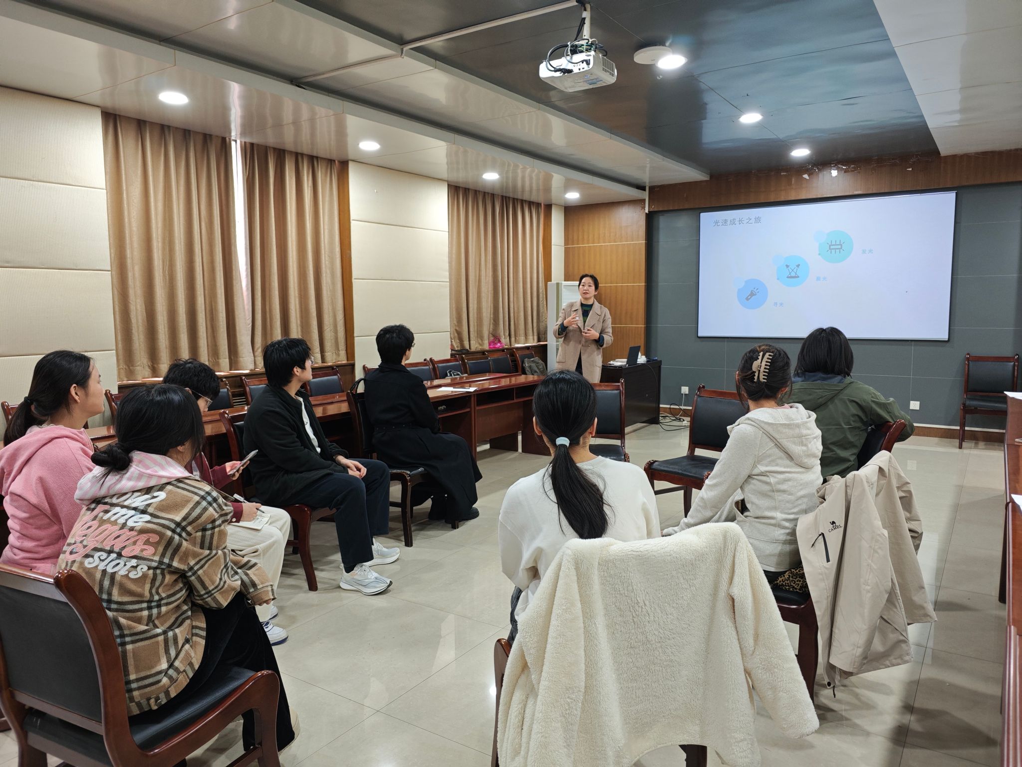 (通讯员:陈鑫、姜萌)为加强研究生心理健康教育,通过和谐融洽、积极向上的团体辅导,帮助研究生舒缓情绪压力、增进彼此信任,10月22日下午,金沙娱乐城 在北校区西大楼Ⅲ区412会议室开展“个人成长与未来发展规划”心理健康团体辅导活动。活动邀请中国科协心理应急志愿者服务队齐静老师作为主讲嘉宾,金沙娱乐城 十余名研究生参与活动。活动伊始,齐静老师围绕心理辅导在自我认知与职业规划中的关键作用进行了简要讲解,并以“光电标签”...